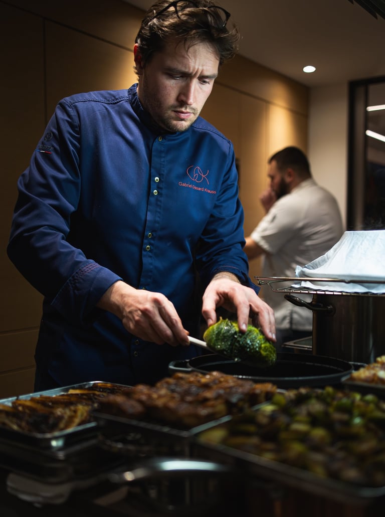 La gastronomie n’est pas uniquement une question de goût; c'est une forme d'art qui sollicite tous les sens. Lors d'un dîner privé, le chef met en scène ses plats avec une esthétique et un style qui font vibrer notre regard même avant de toucher nos papilles. Les couleurs vibrantes, les textures variées et les arrangements artistiques transforment chaque plat en tableau vivant. Cette approche permet de savourer non seulement les saveurs, mais aussi la beauté du moment, rendant l’expérience encore plus mémorable.
